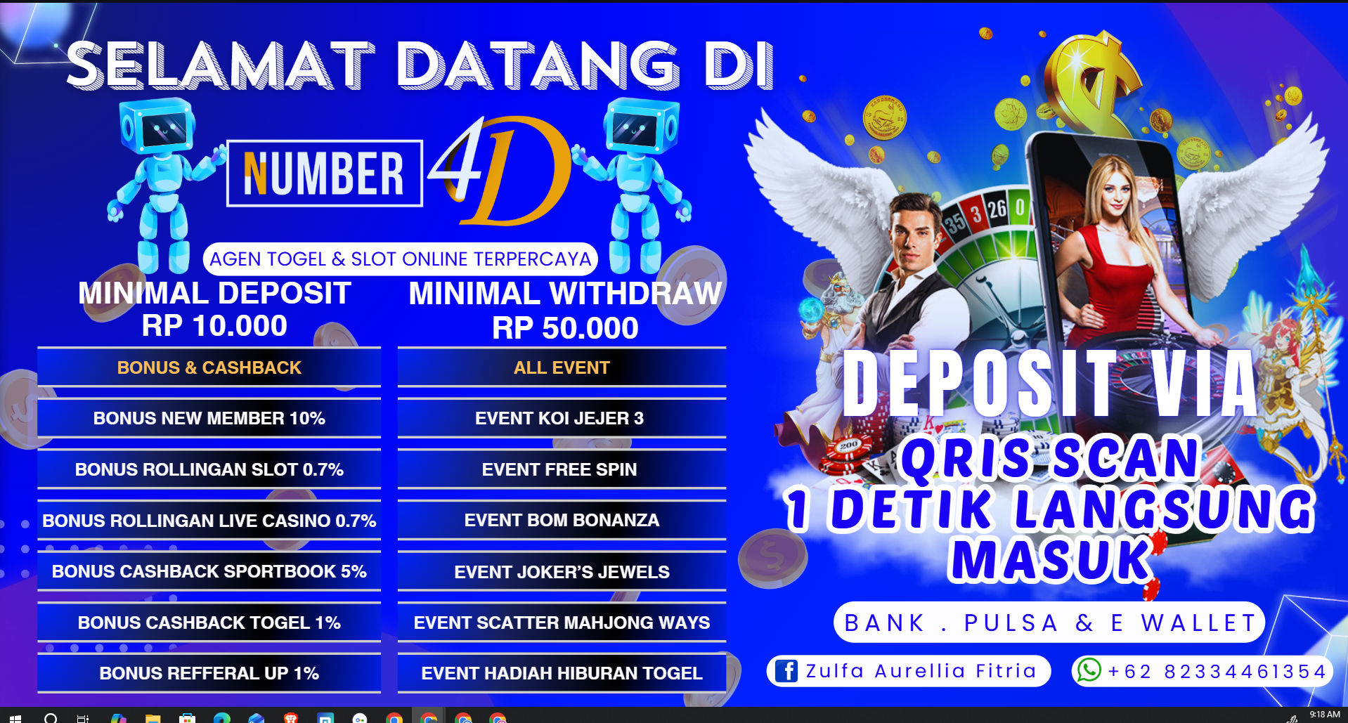 SELAMAT DATANG DI NUMBER4D AGEN TOGEL ONLINE DAN AGEN SLOT ONLINE TERPERCAYA. MINIMAL DEPOSIT Rp 10.000,- MINIMAL WITHDRAW Rp 50.000,-